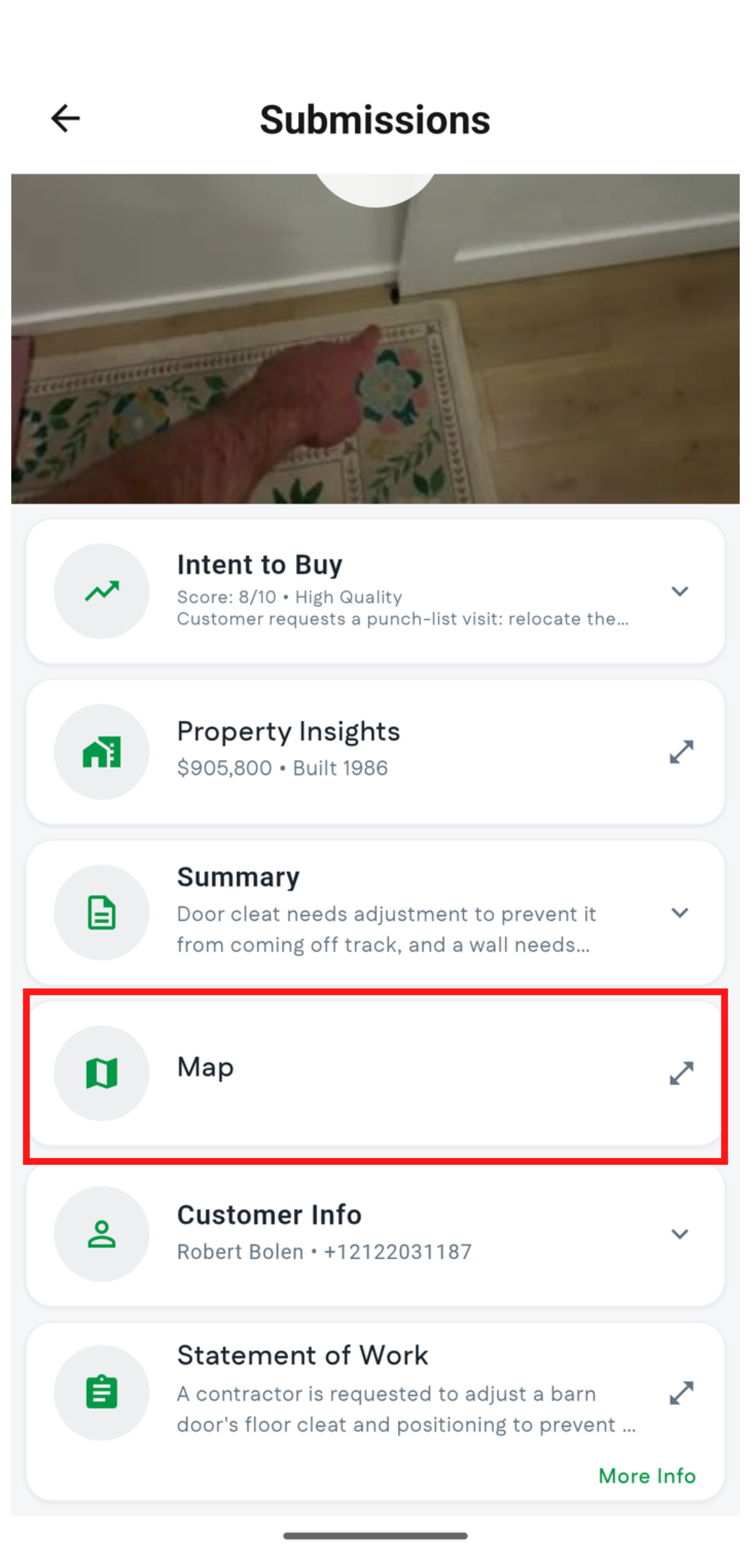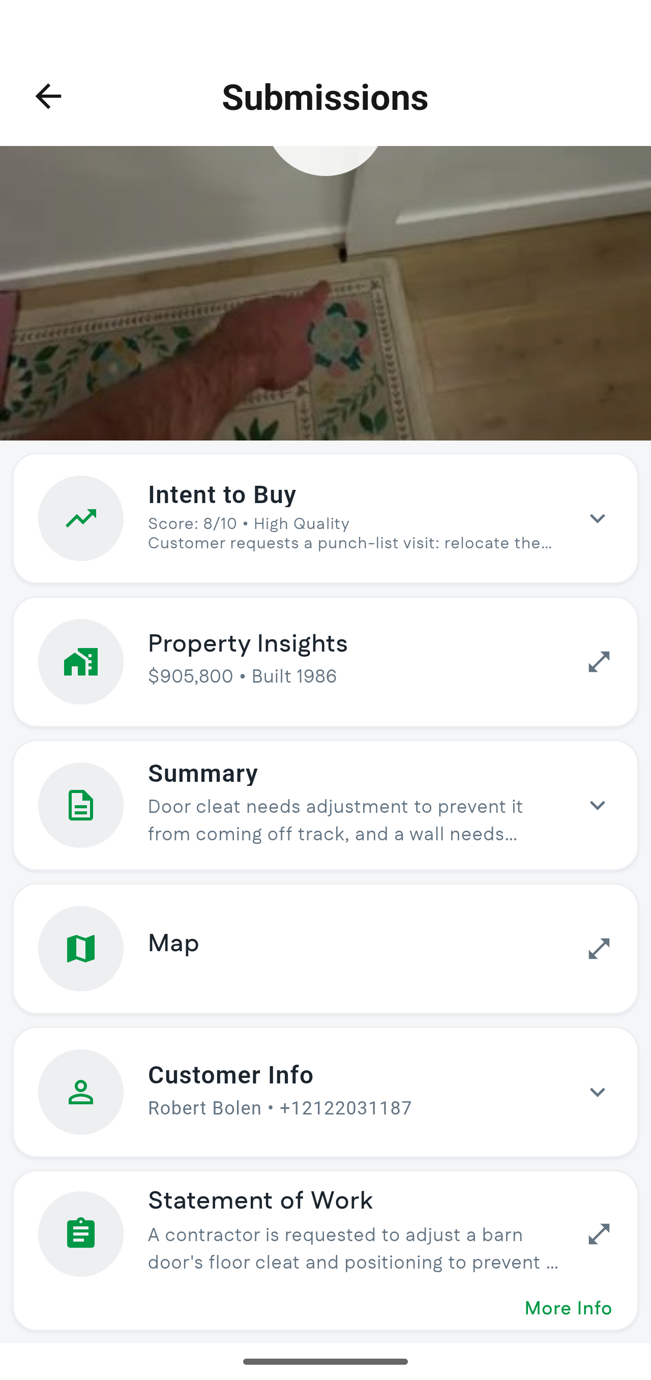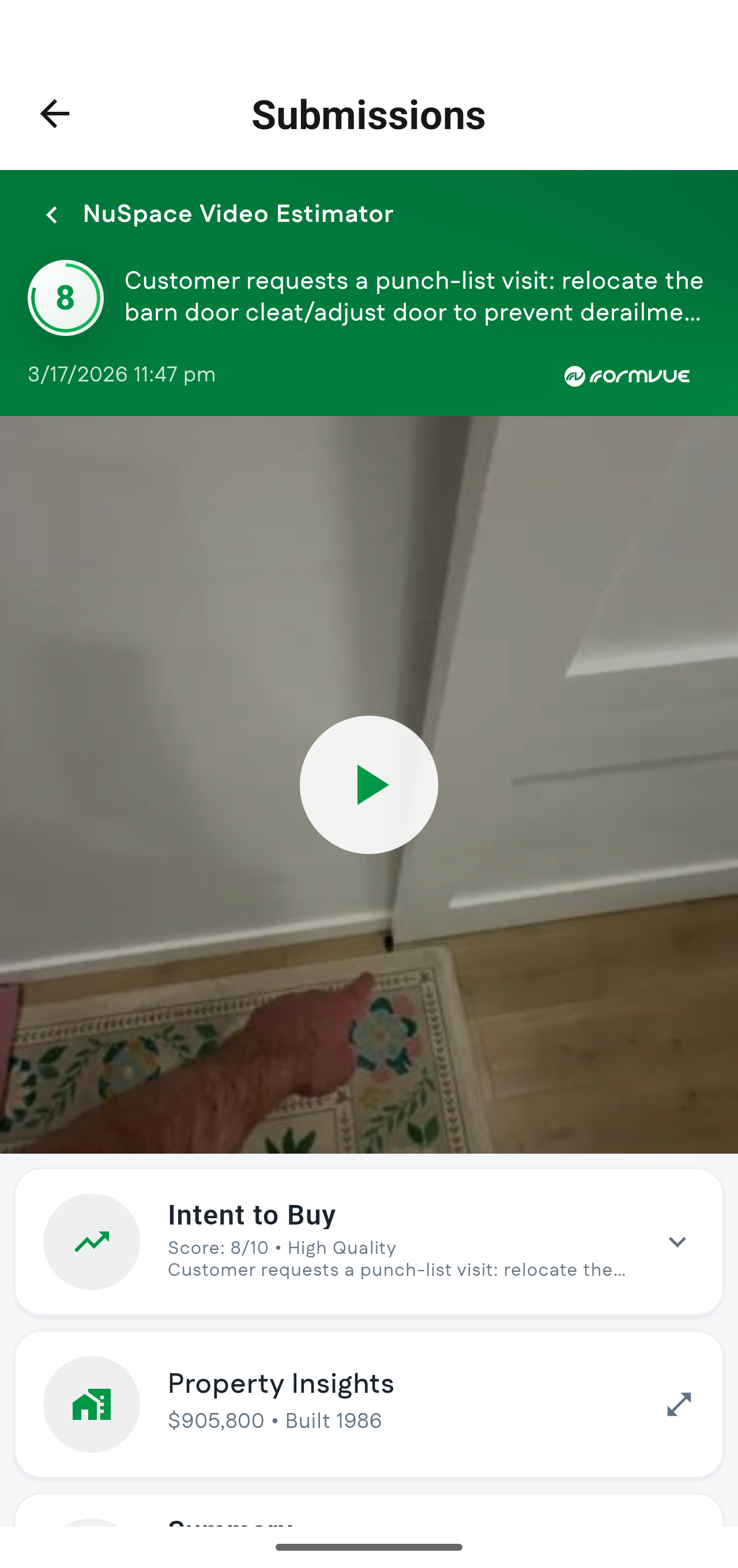 - Summary: Shows a brief summary of everything the customer showed and asked for in their video submission.