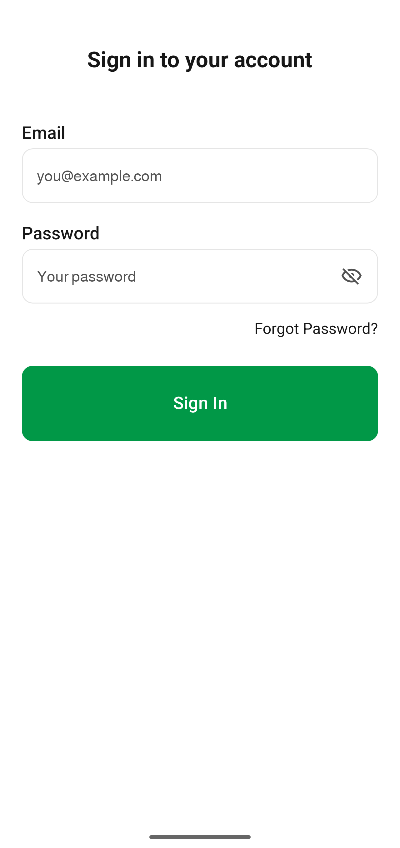 Enter your email address and password to login. The FormVue mobile app uses the same username and password as the web app.
