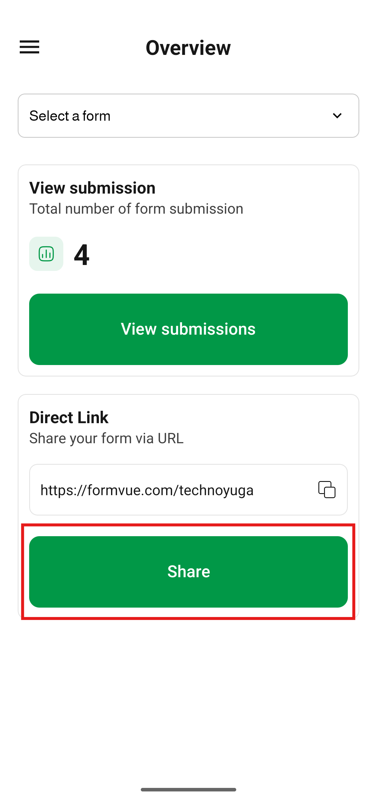 The FormVue mobile app provides several easy ways to share your link.
