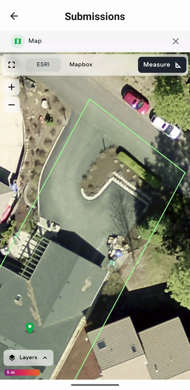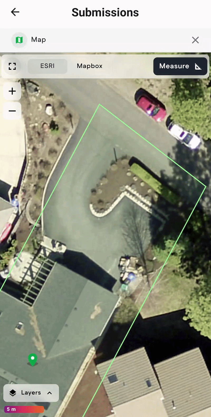 FormVue provides tools for measuring area and linear feet using the map.