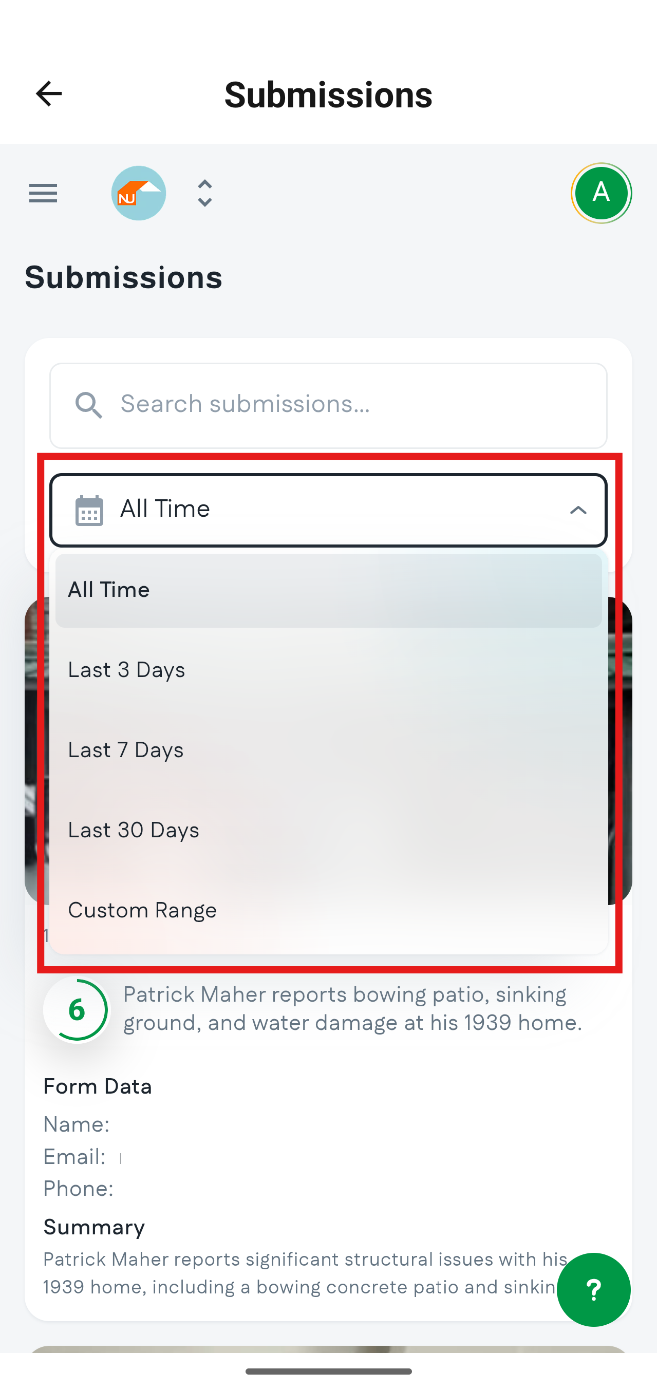 - Filter your submissions based on time using the filter dropdown