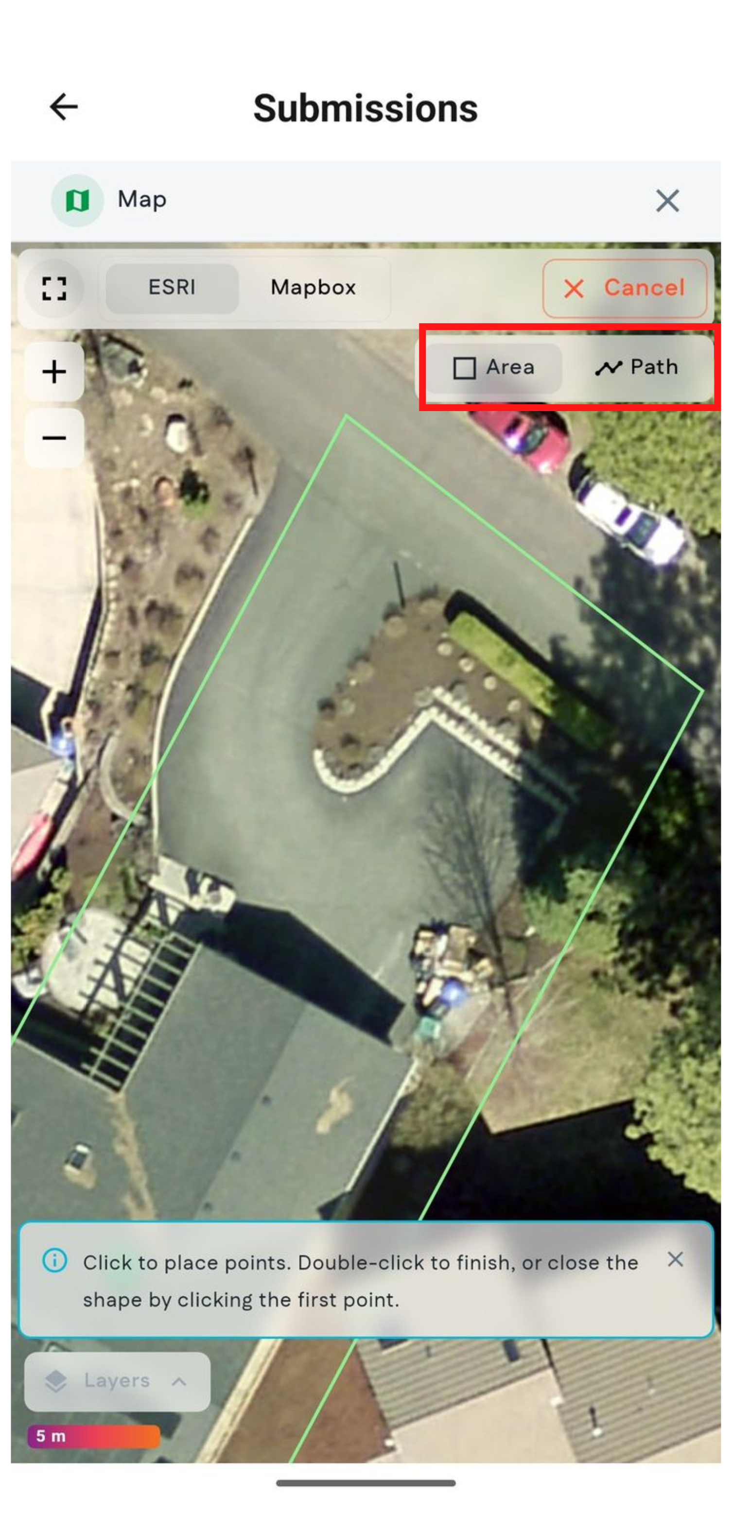 - Finish your measurement by completing the area and returning to the first point